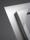 Le tirage est collé de façon permanente sur une plaque d'aluminium du même format que la photographie. Une colle spéciale et un passage sous presse permettent une finition impeccable et une très longue tenue. Un châssis en aluminium de 2,5 cm d'épaisseur, au dos de la photographie, permet à la fois une excellente rigidité et une accroche en retrait du mur. Cette finition permet un regard direct sur la photo. - La photo ci-contre vous présente le dos du contrecollage et permet de visualiser le châssis, renforcé aux angles pour les grands formats -